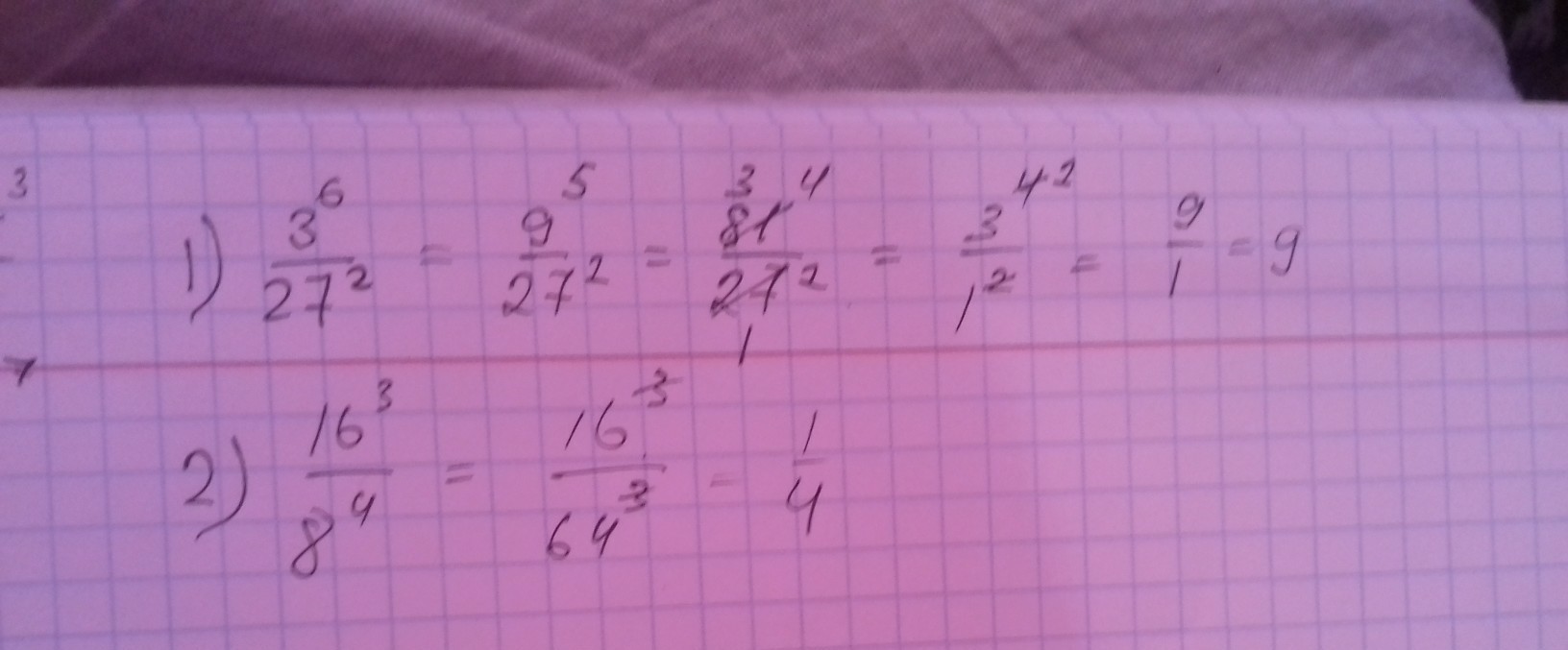 тогда 3^6/27^2=1; 16³/8⁴=1