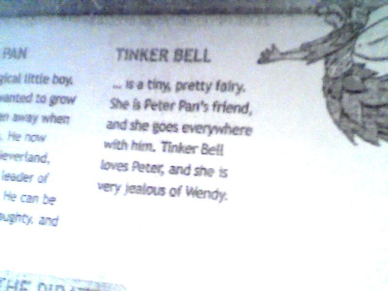 Крошечная, хорошенькая фея. Она - друг Питера Пена и везде следует за ним. Динь-Динь любит Питера, и она очень ревнует его к Венди.