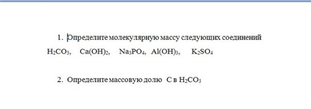 Что такое молекулярная масса? это сумма масс всех элементов в веществе. Вот вещество h2co3, Ar(h)=2*1=2, Ar(C)=12, Ar(o)=16*3=48, складываем все массы и получаем: Mr(h2co3)=2+12+48=62г/моль