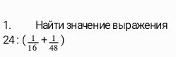 24:(1/16+1/48)=24:(3+1)/48=24:(3+1/48)=24:4/48=96/48=2