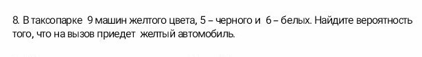Ответ:вероятность того,что приедет желтая машина равна 0,3 или 3/10