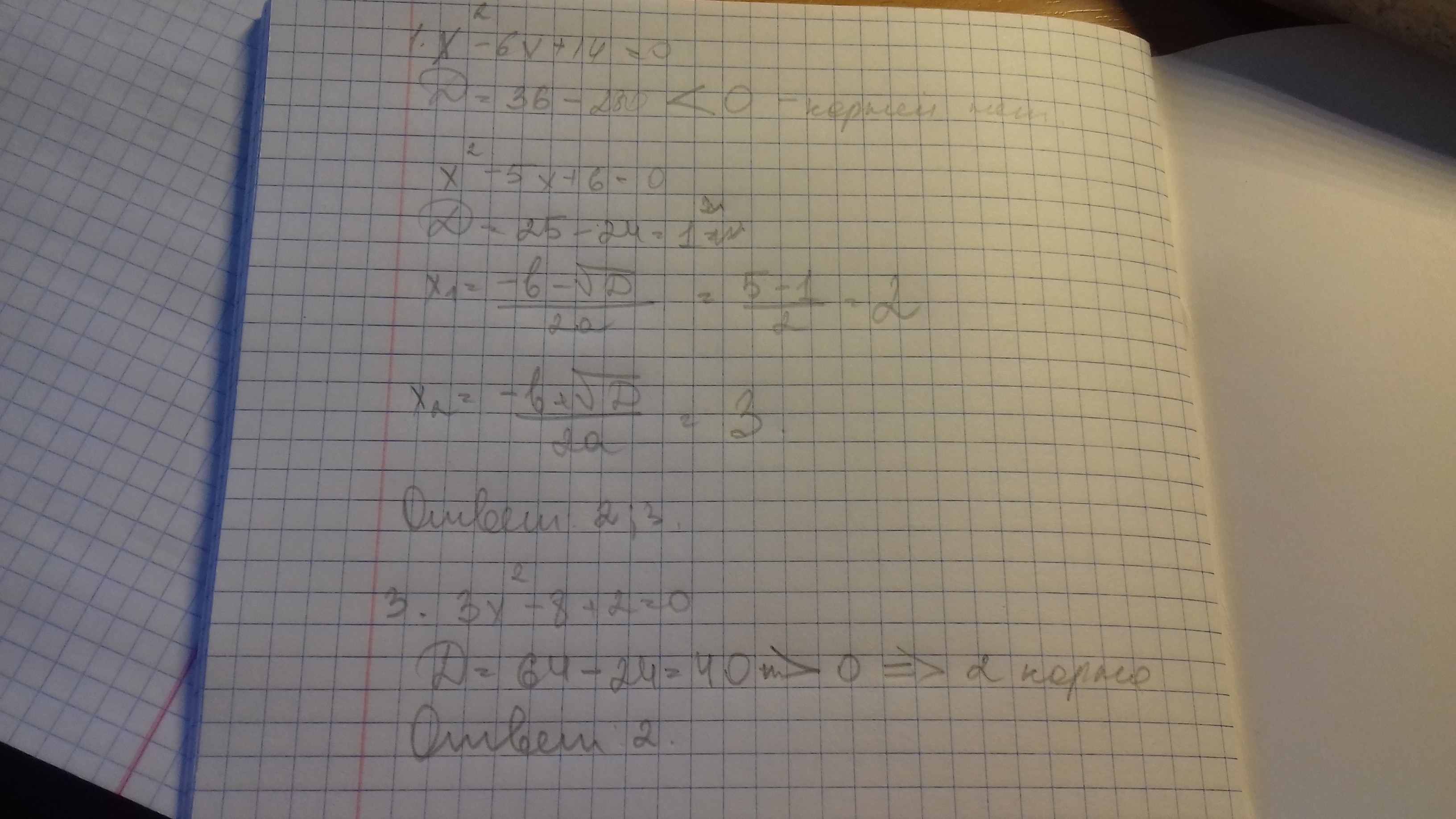 РЕБЯТААА ПОЖАЛУЙСТА ПОМОГИТЕ РЕШИТЬ 1)Выделите квадрат двучлена: x2-6x+14; 2)Найдите корни квадратного трехчлена: x2-5x+6; 3) Сколько корней имеет квадратный трехчлен 3x2-8+2