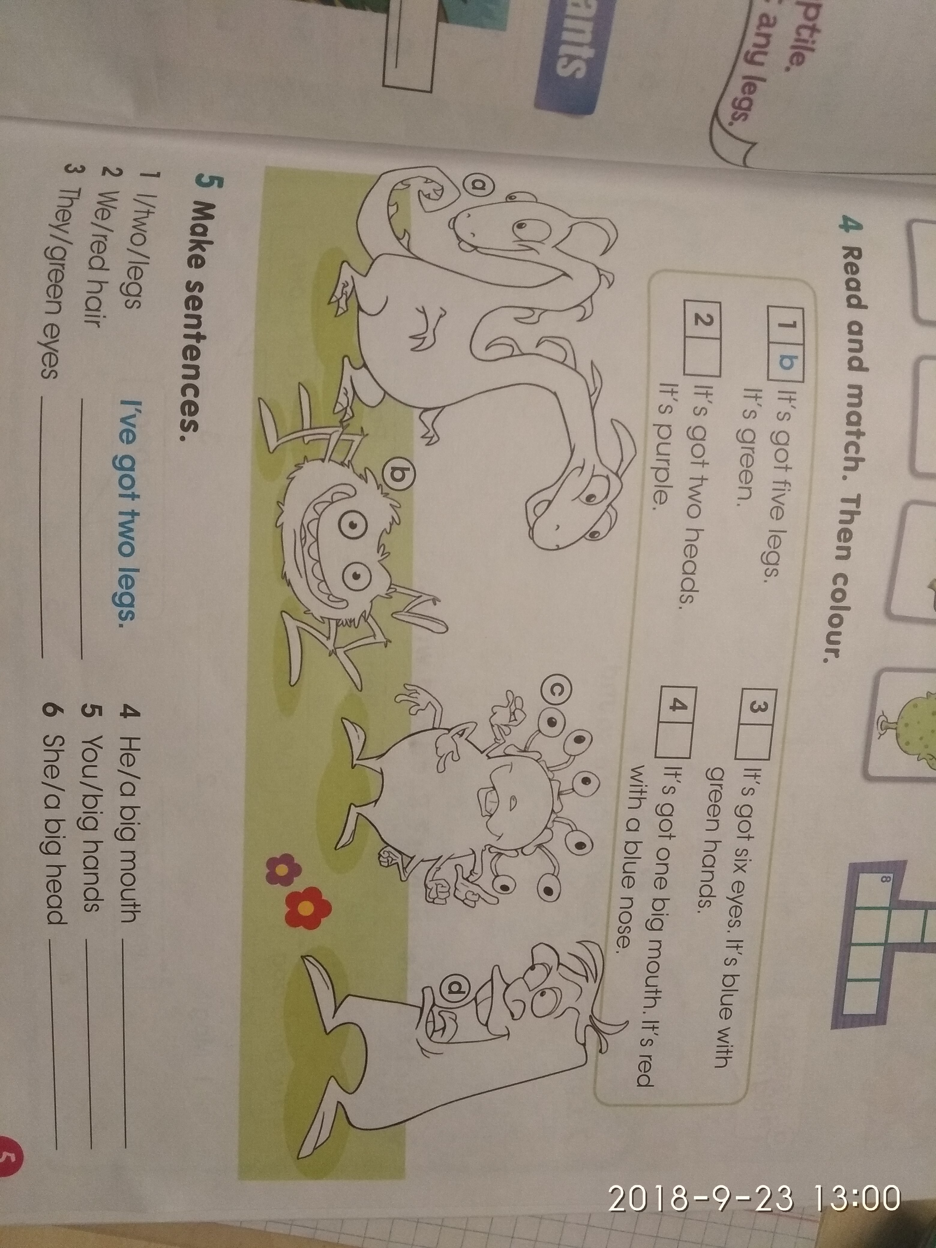 3.Шестиглазое животное просит тебя разукрасить себя синим,но с зелеными руками.