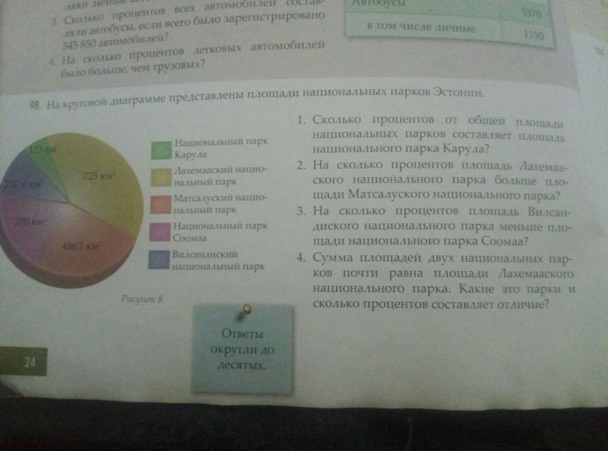4) 25,0 + 12,2 = 37,2 (%) - сумма двух парков - Матсалунд и Вилсанд