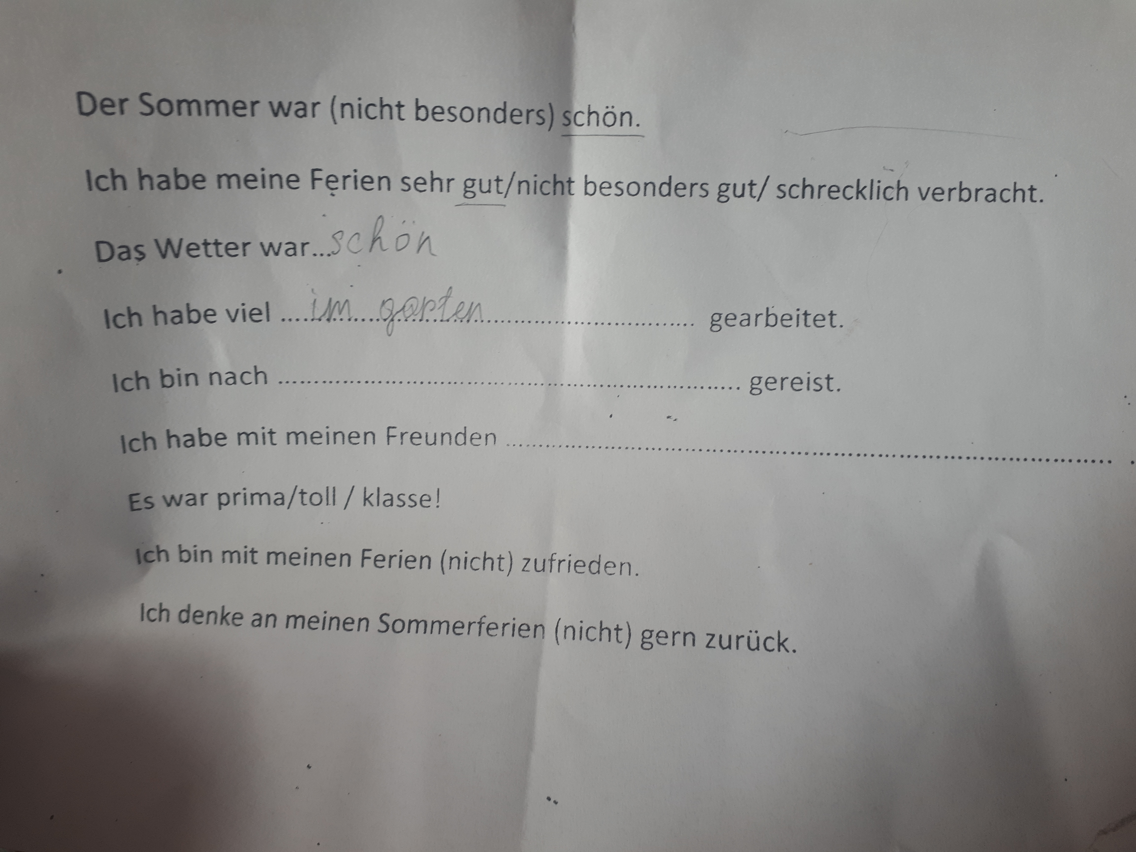 Ich habe mit meinen Freunden in der Sonne gelegen und oft im See gebadet.