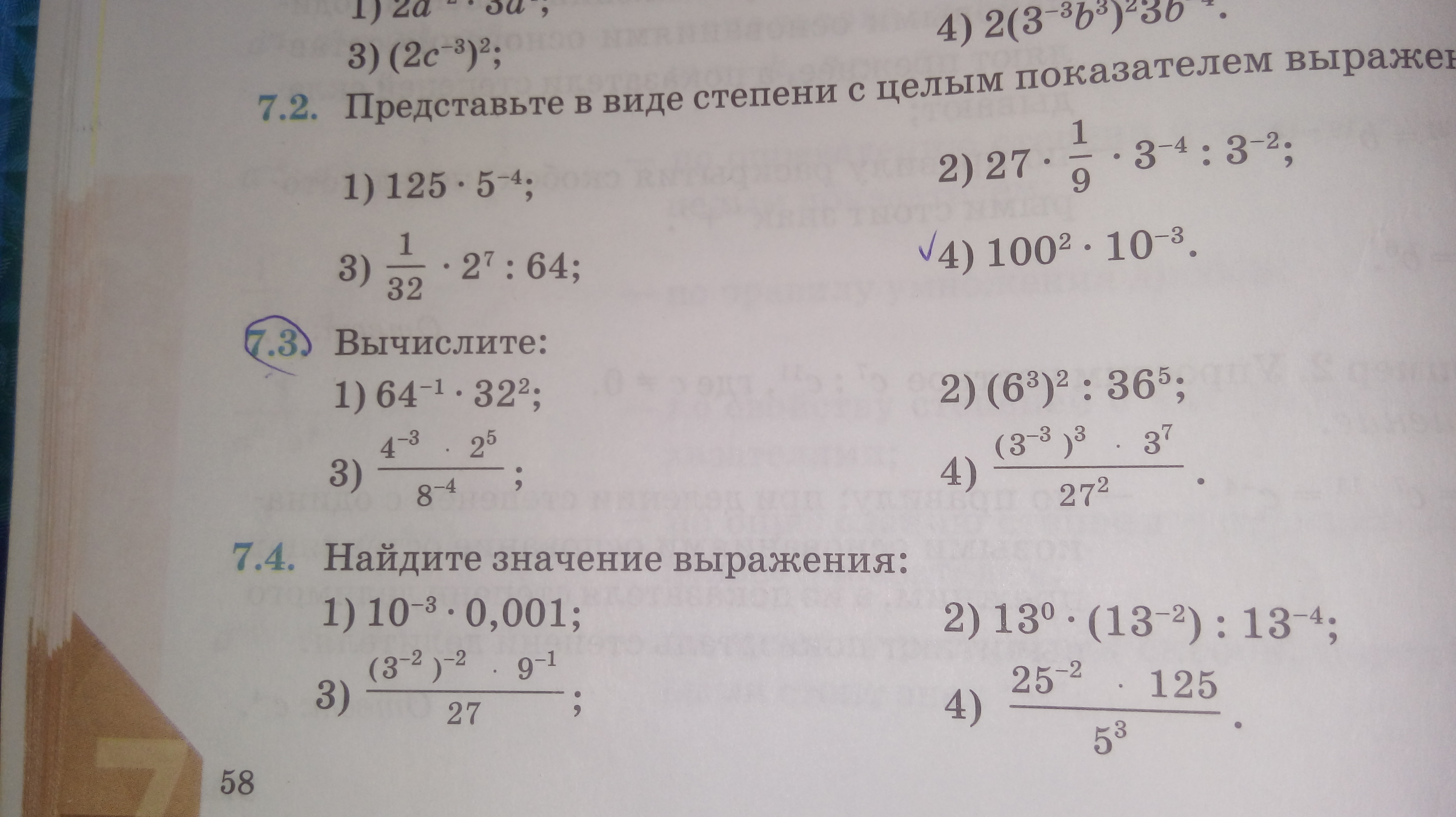 4)(3^(-3))^3*3^7/27^2=3^(-9)*3^7/3^6=3^(-2)/3^6=1/3^8=1/6561