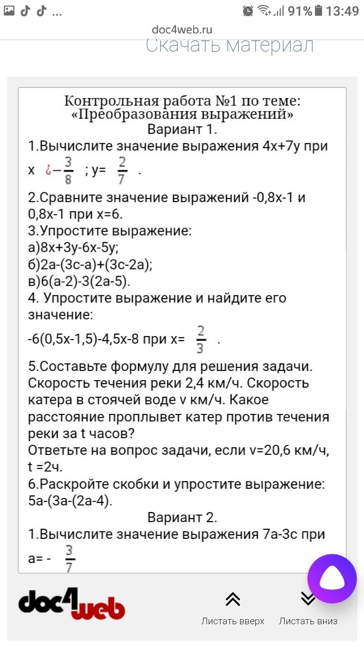 Если х=6,то -0,8*6-1=-5,8