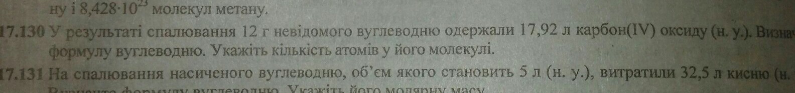 У результаті спалювання 12 г невідомого вуглеводню одержали 17,92 л CO2. Знайти формулу вуглеводню.