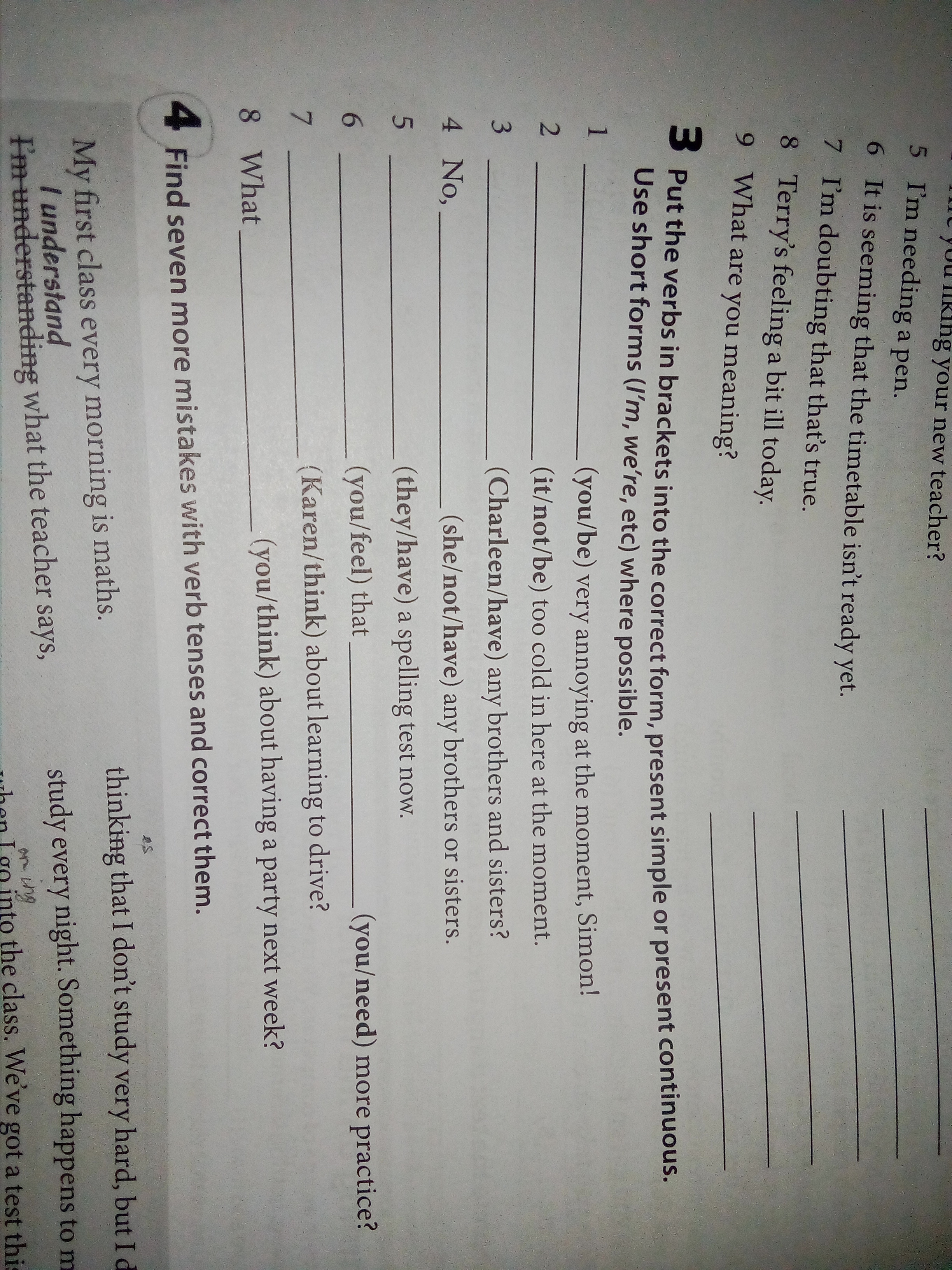 5. They're having a spelling test now.