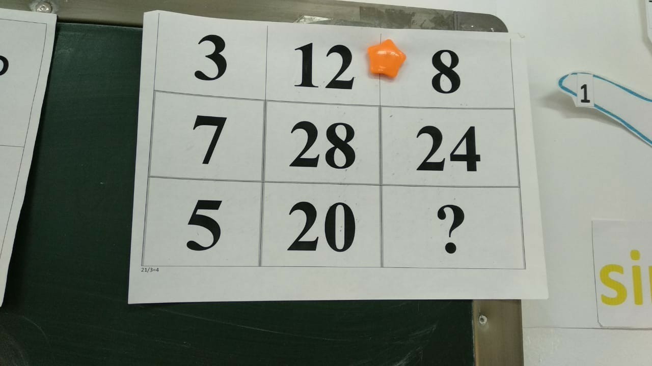 (3 * 4 = 12, 7 * 4 = 28, 5 * 4 = 20,