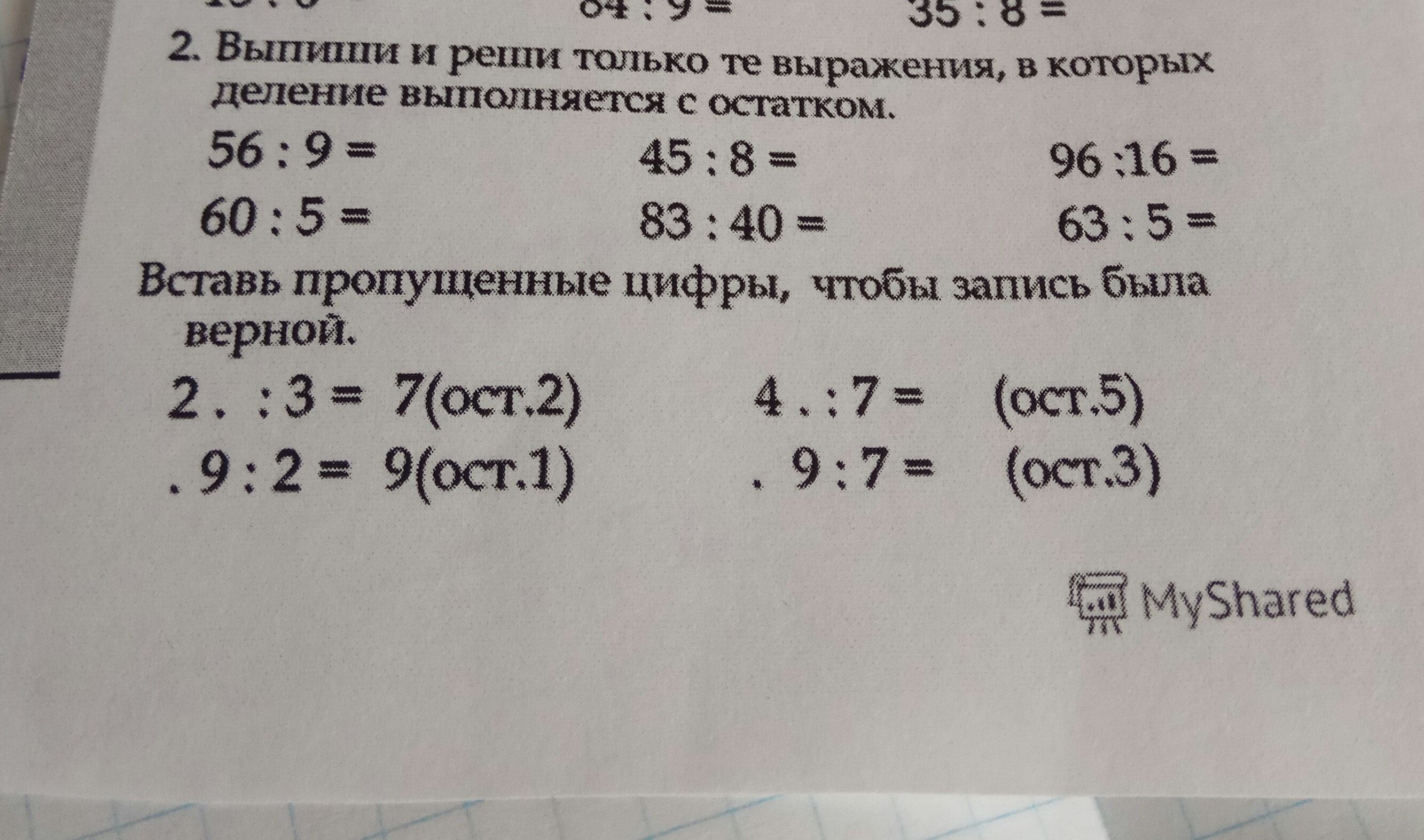 19:2=9(ост. 1). 59:7=8(ост. 3)