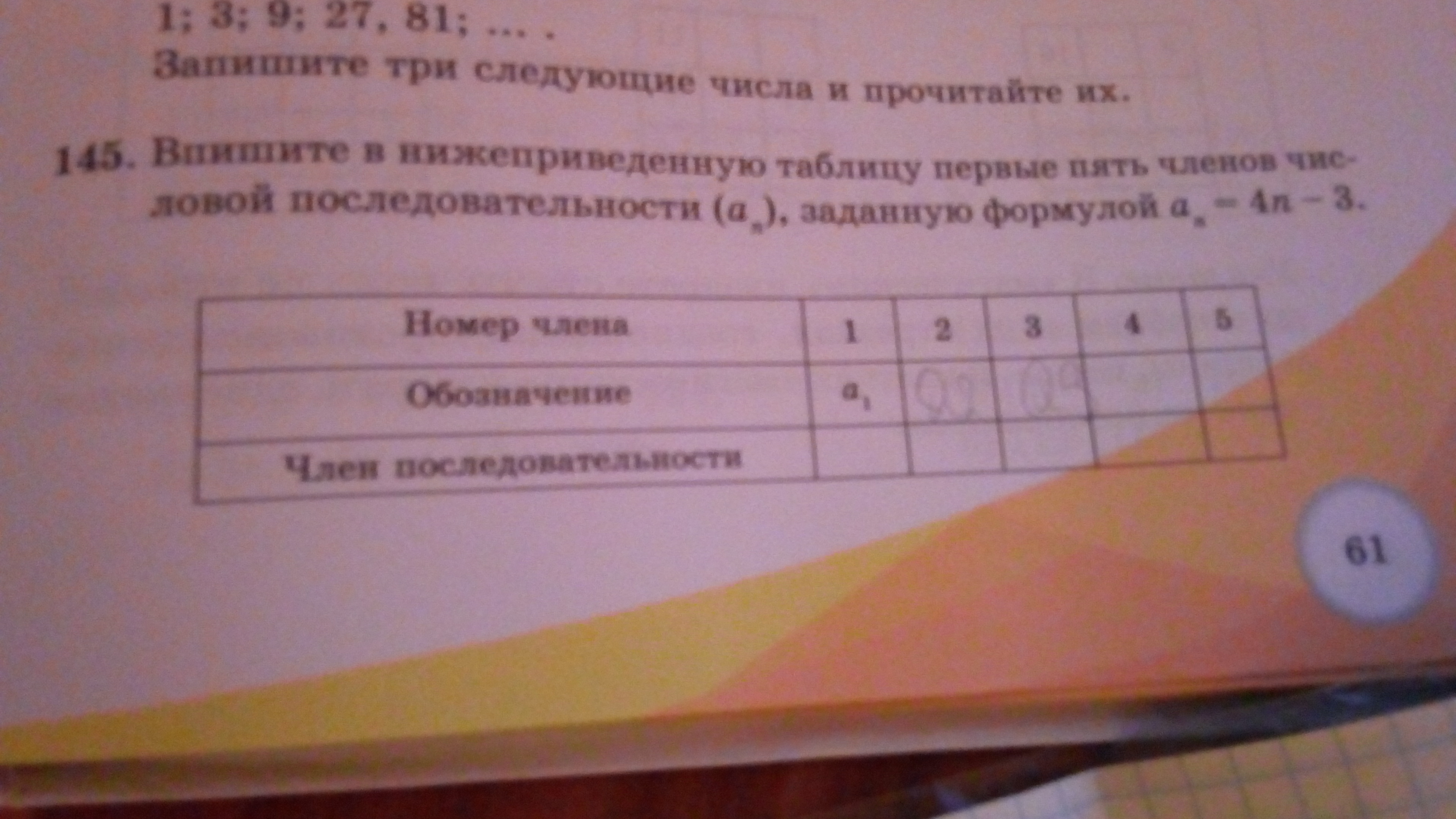 Числовая последовательность задана формулой An=4n-3, чтобы найти первые 5 членов, подставляем числа от 1 до 5 вместо n