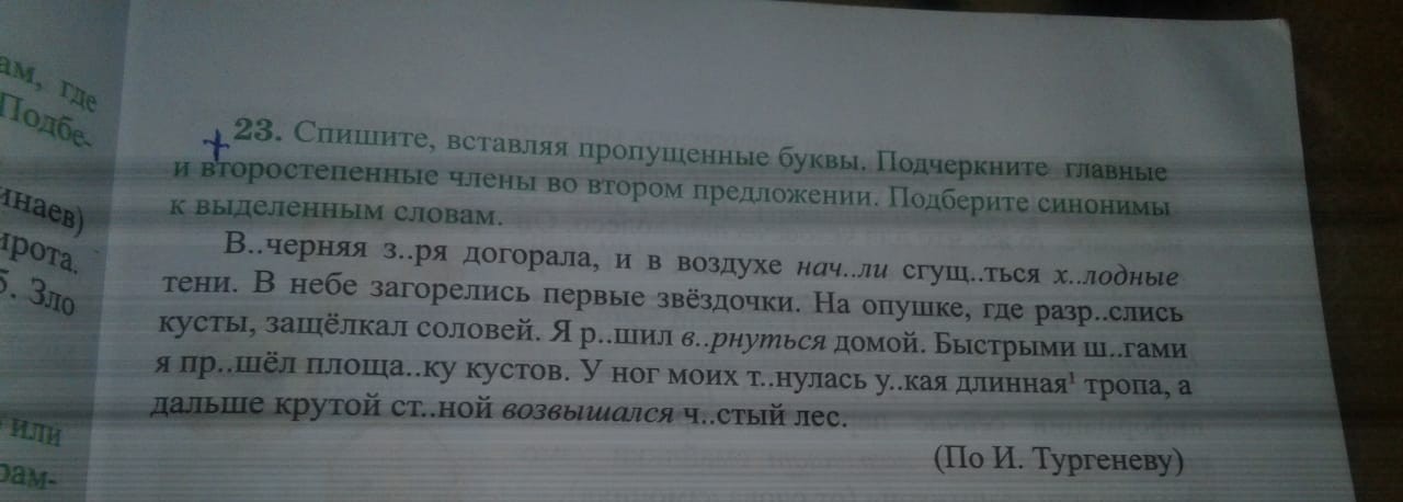 Вечерняя заря догорала, и в воздухе начали сгущаться холодные тени. В небе загорелись первые звездочки. На опушке, где разрослись кусты, защелкал соловей. Я решил вернуться домой. Быстрыми шагами я прошел площадку кустов. У ног моих тянулась узкая длинная тропа, а дальше крутой стеной возвышался чистый лес.