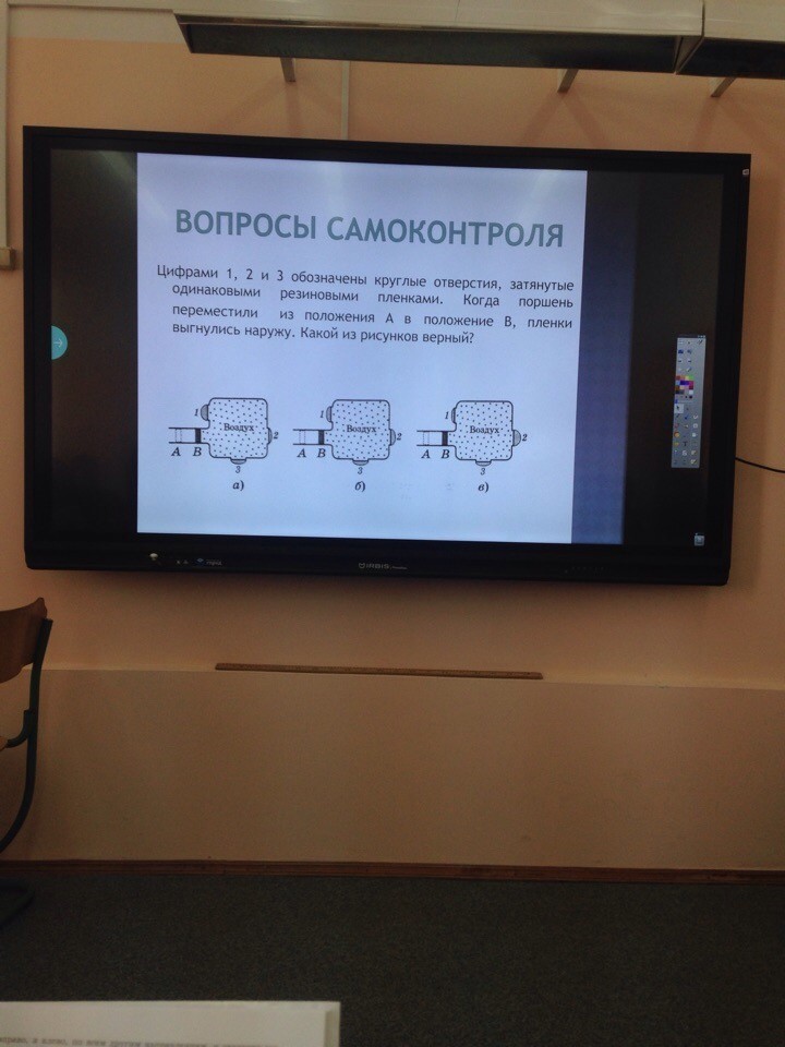 Мне кажется б) т.к. согласно закону Паскаля давление в жидкостях и в газах передается одинаково во всех направлениях