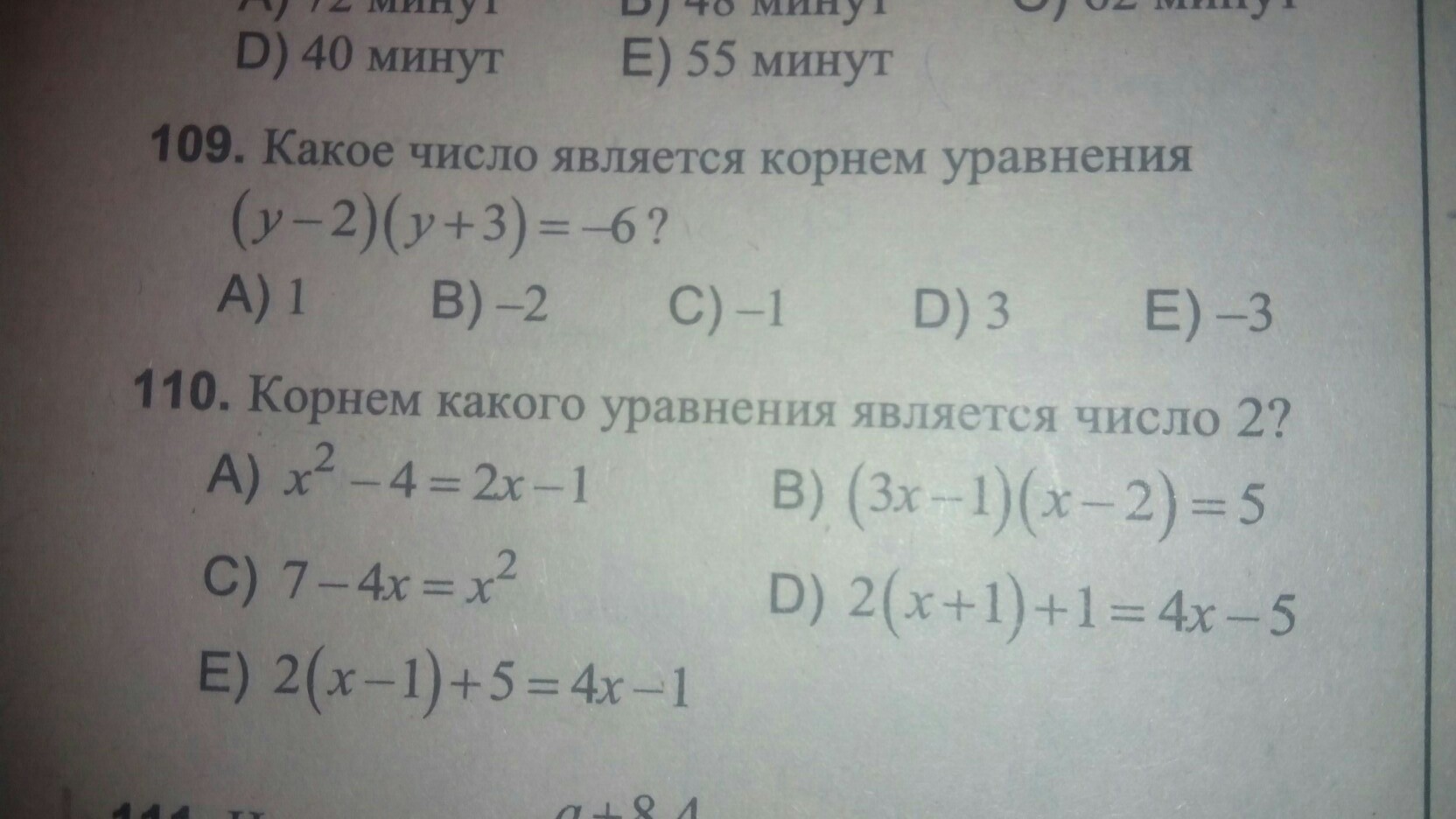 в 109 подставь числа из вариантов ответа в пример, если получается -6, то значит верный ответ