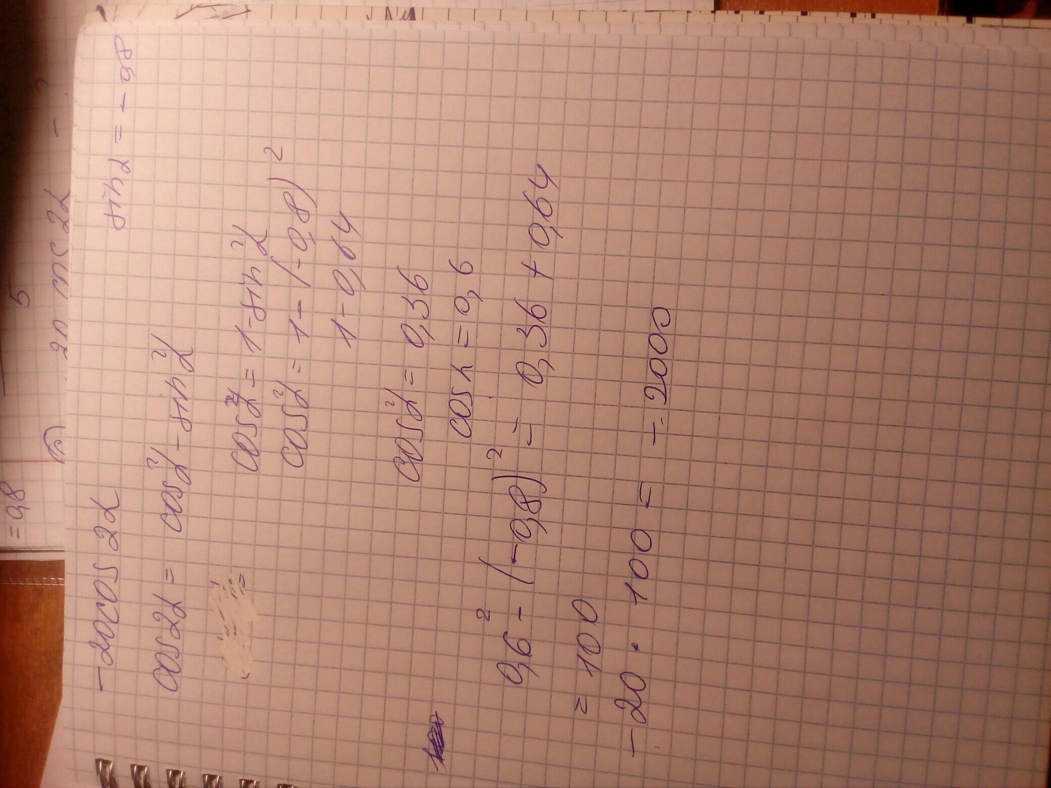 -20cos2α = -20*(1 - 2sin²α) = -20*(1 - 2*(-0,8)²) = -20*(1 - 1,28) = -20*(-0,28) = 5,6