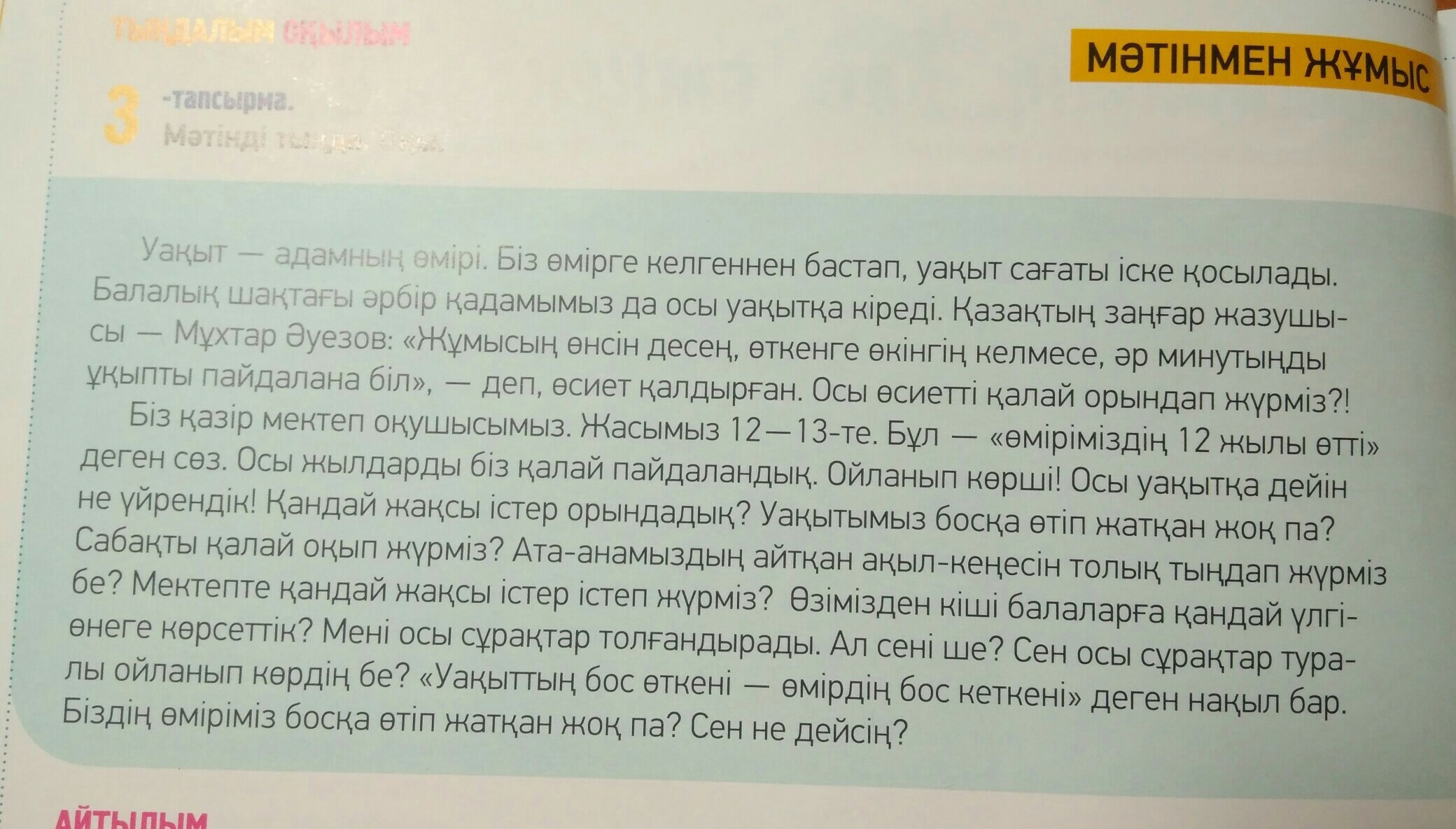 2)《әр минутыңды ұқыпты пайдалана біл》-деп кім айтты?