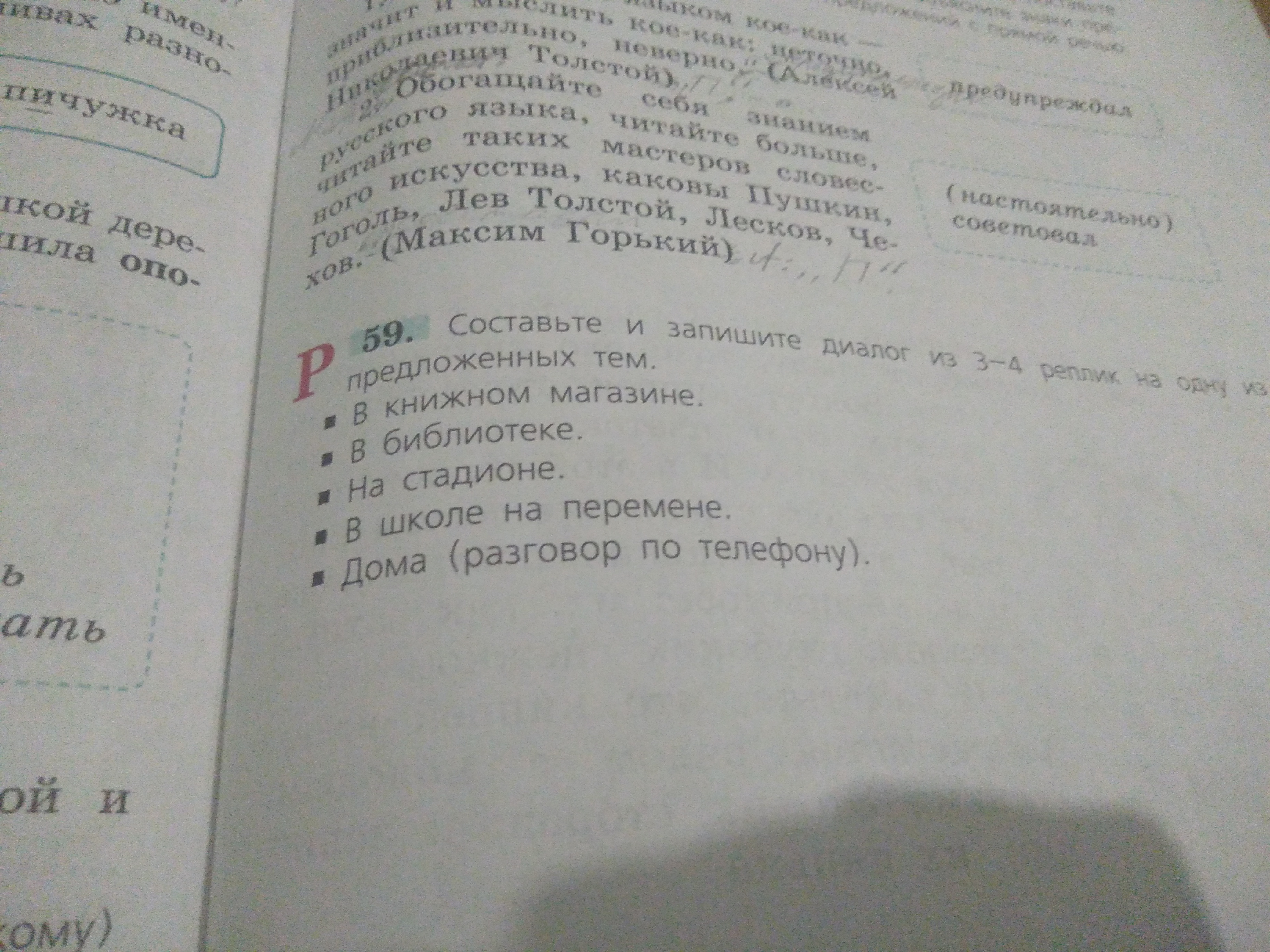-Да, конечно. Записывай. По русскому упражнение 59, по математике номер 46 и 51...(ещё что-то)Всё.
