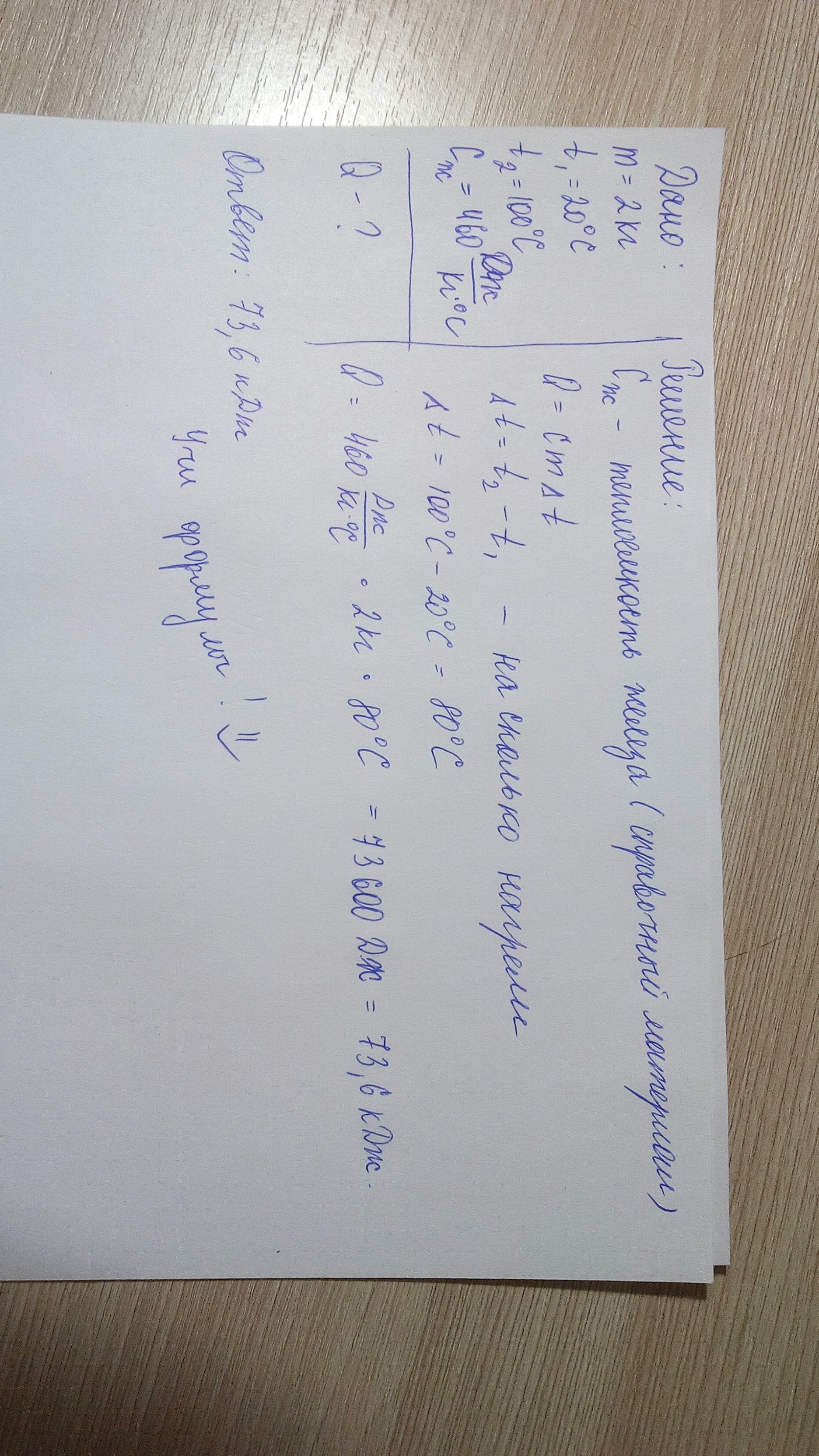 какое кол-во теплоты понадобится для нагрева для железной двухкилограмовой от 20 до ста градусов (можно, пожалуйста, с еще небольшим описанием действий)