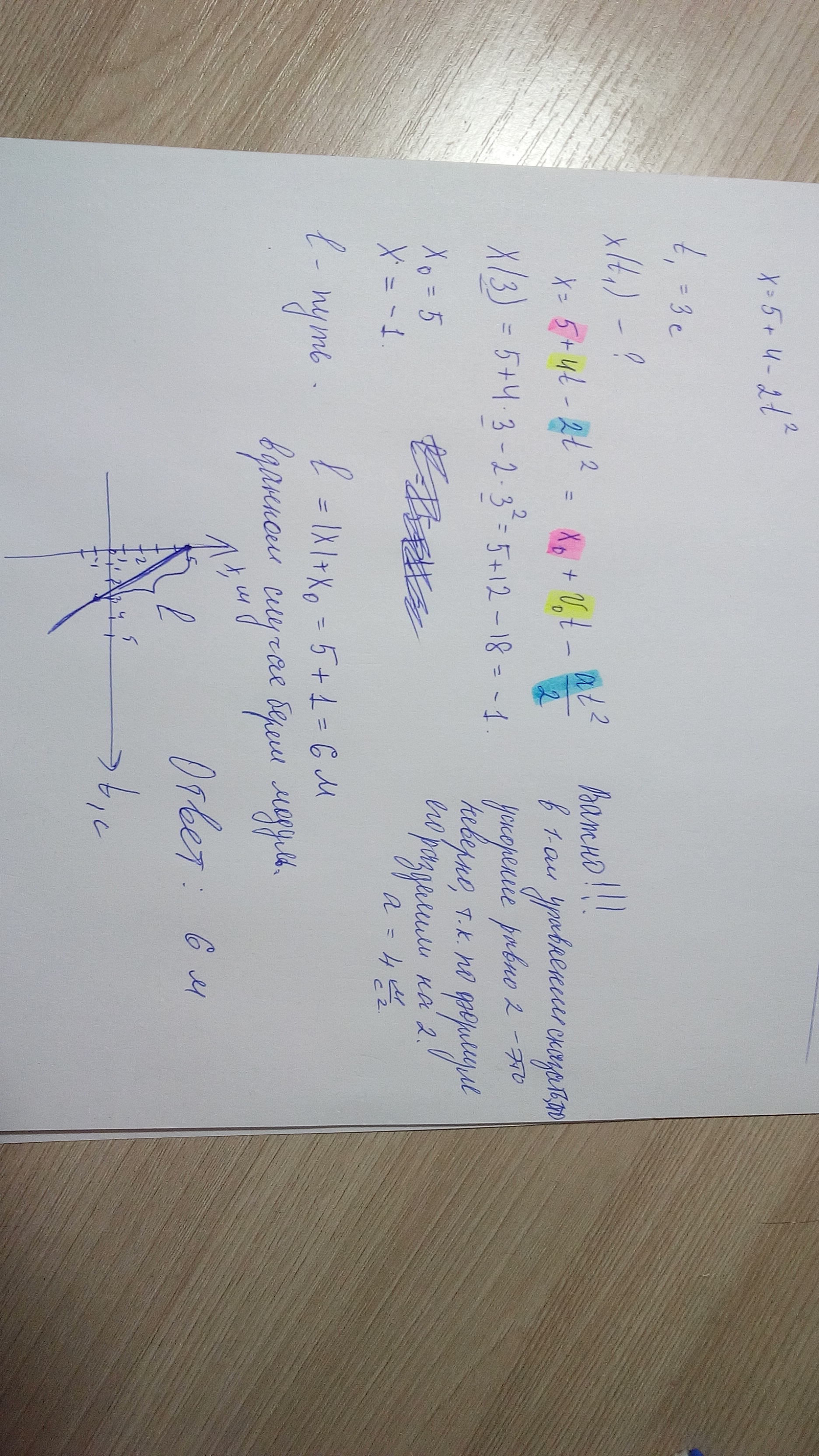 закон движения материальной точки имеет вид X =5 + 4 - 2t^2 . Определите путь, пройденный точки ,к моменту времени t1=3с .