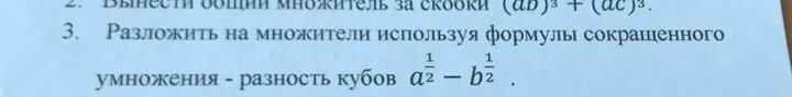 Разложить на множители используя формулы сокращенного умножения - Разность кубов а в степени ½ минус b в степени ½