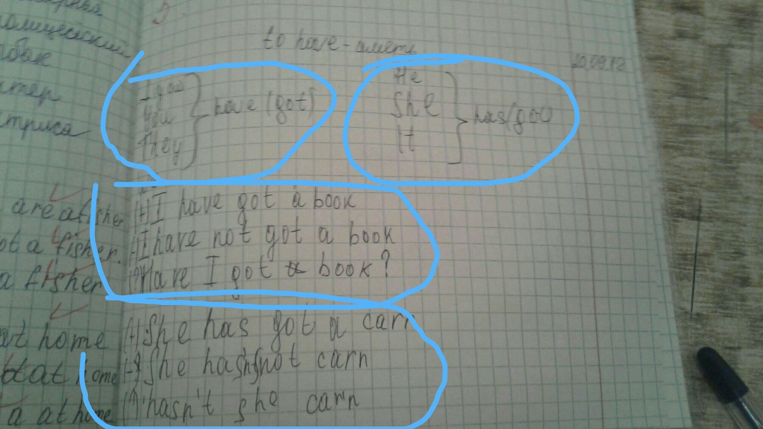 I have got a book. You have got a apple. We have got a banana. I have got a sister. I have got a pen. He has got a car. She has got a cat. She has got a dog. He has got a house. Sister has got a book.