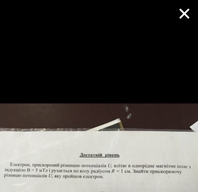 Електрон ускоренный разницей потенциалов U, влетает в однородное магнитное поле с индукцией В=5мТл и движется по колу радиусом R=1 см. Найти прискоренную разницу потенциалов U, который нашёл електрон ПОМОГИТЕ СРОЧНО