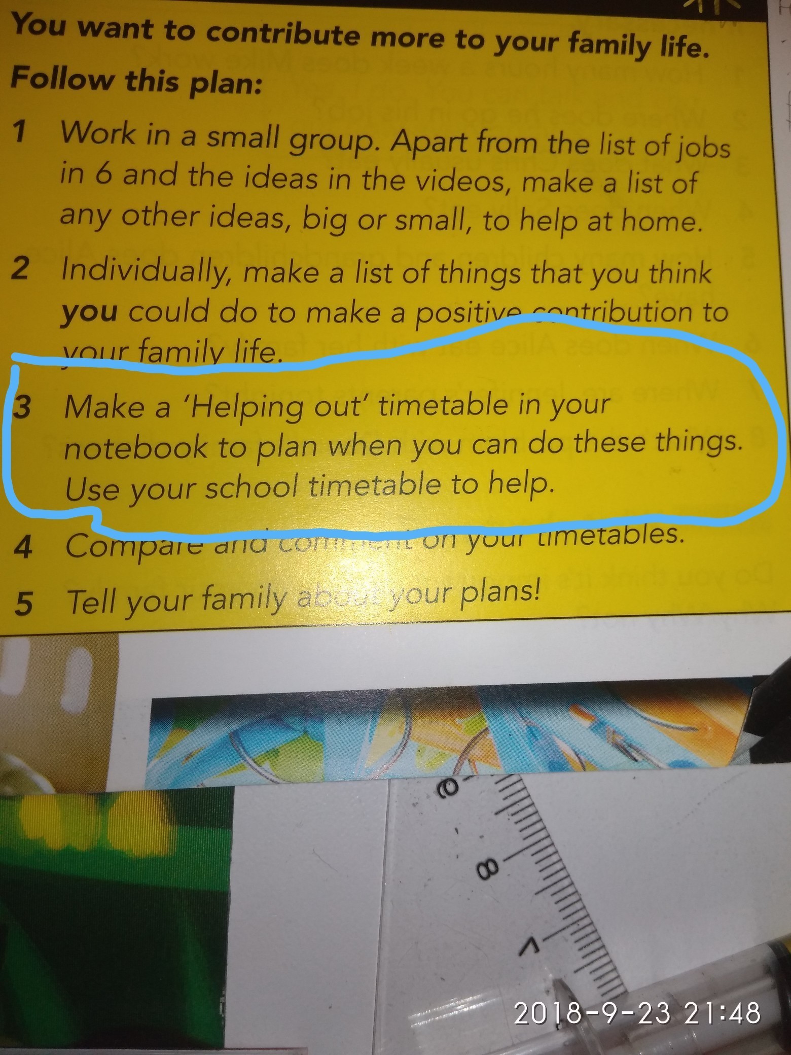 "Сделай расписание в своём ежедневнике, чтобы спланировать, когда ты сможешь это сделать. Тебе поможет твоё школьное расписание". Как-то так.