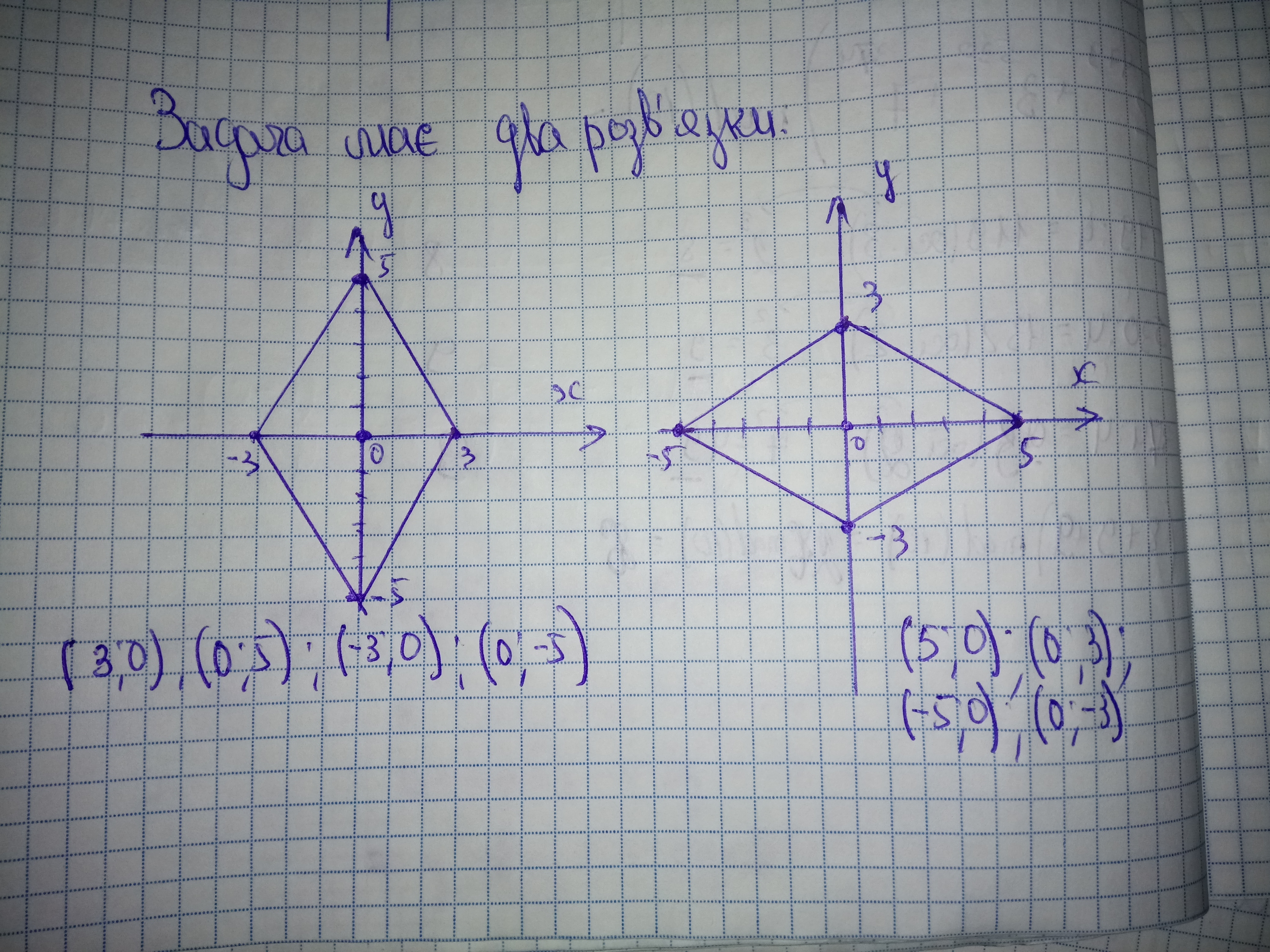 точка перетину діагоналей ромба збігається з початком координат ,а його діагоналі лежать на осях координат.Знайдіть координати вершин ромба,якщо довжини діагоналей 6 одиниць та 10 одиниць.Скільки розв'язків має задача?