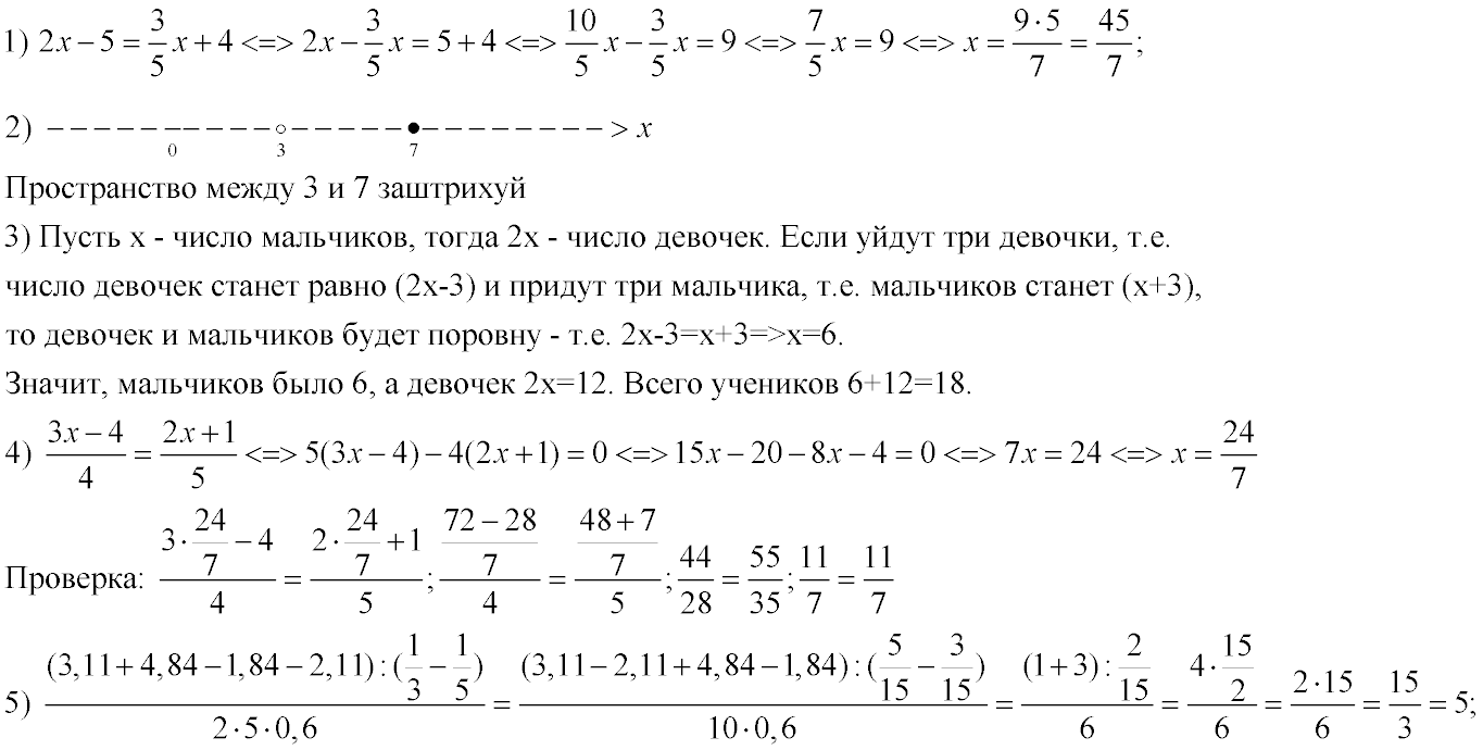 5(3х-4)=4(2х+1)
