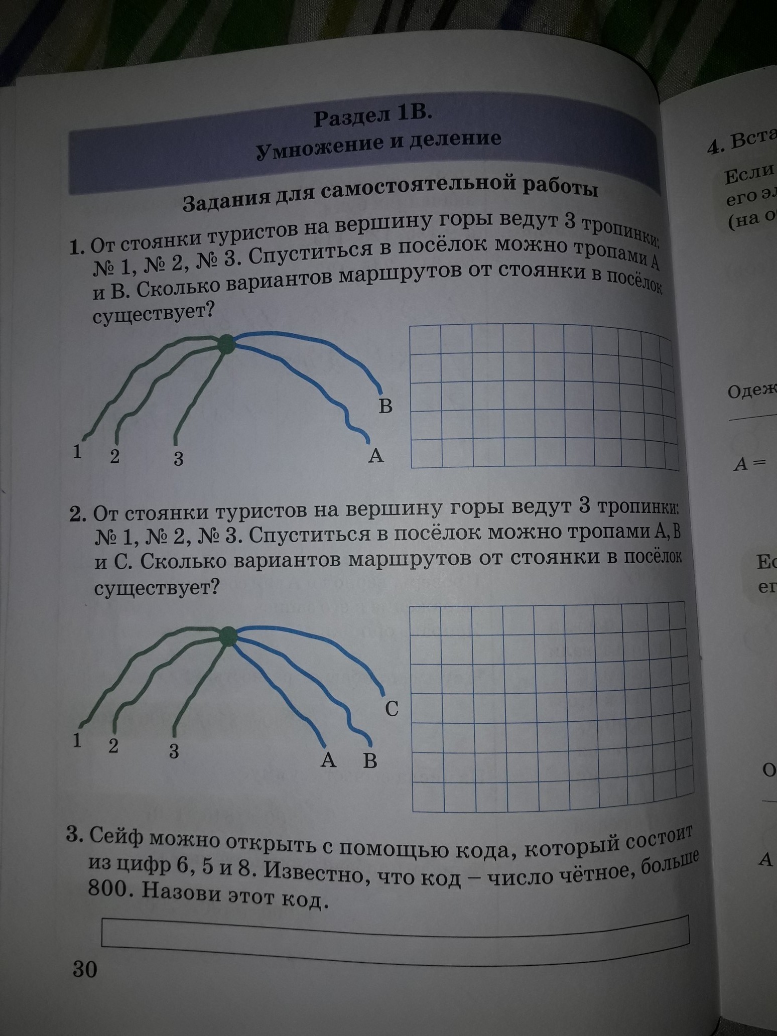 3 х 2 = 6 - вариантов пути стоянка-тропинка существует.