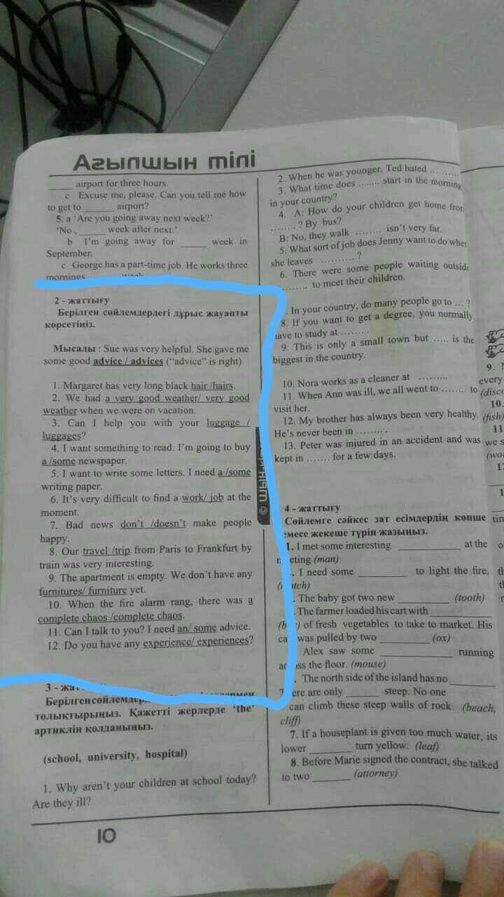 1 hair, 2 very good weather, 3 luggage, 4 some, 5 a, 6 work, 7 does't, 8 trip, 9 furniture, 10 a complete chaos, 11 some, 12 experience.