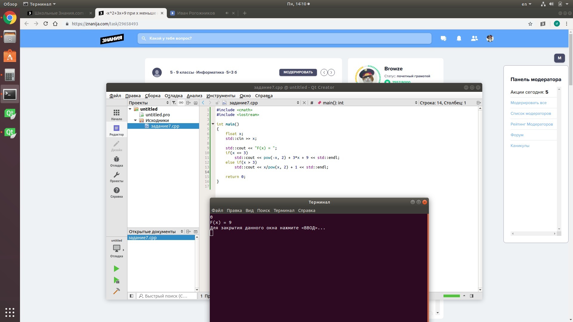 std::cout << pow(-x, 2) + 3*x + 9 << std::endl;