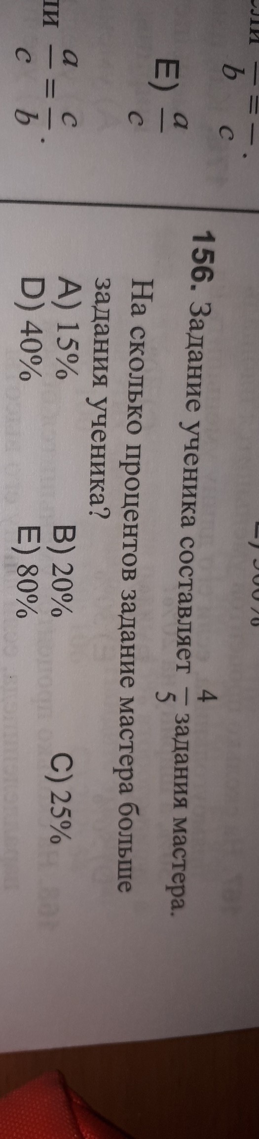 х/0,8х = 1/0,8 * 1 = 1/0,8 = 1,25 * 100 = 125% делает мастер по отношению к ученику