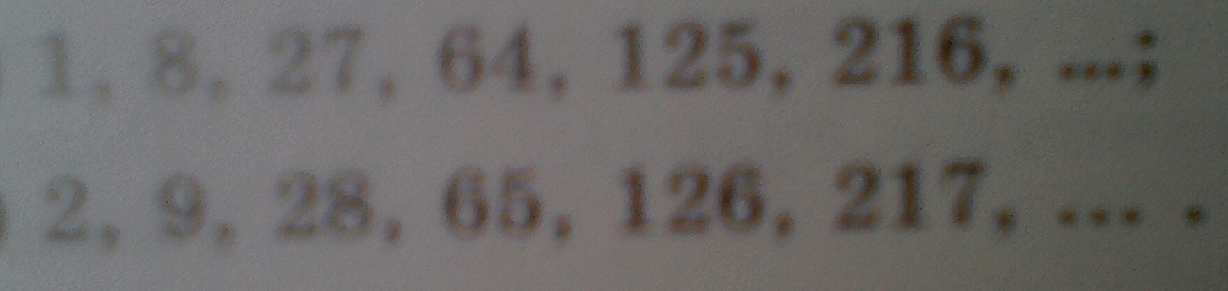 куб это число умноженное само на себя три раза, можно записать как 1*1*1=1, 2*2*2=8 и т. д. во втором 1*1*1+1=2, 2*2*2+1=9 и т. д.