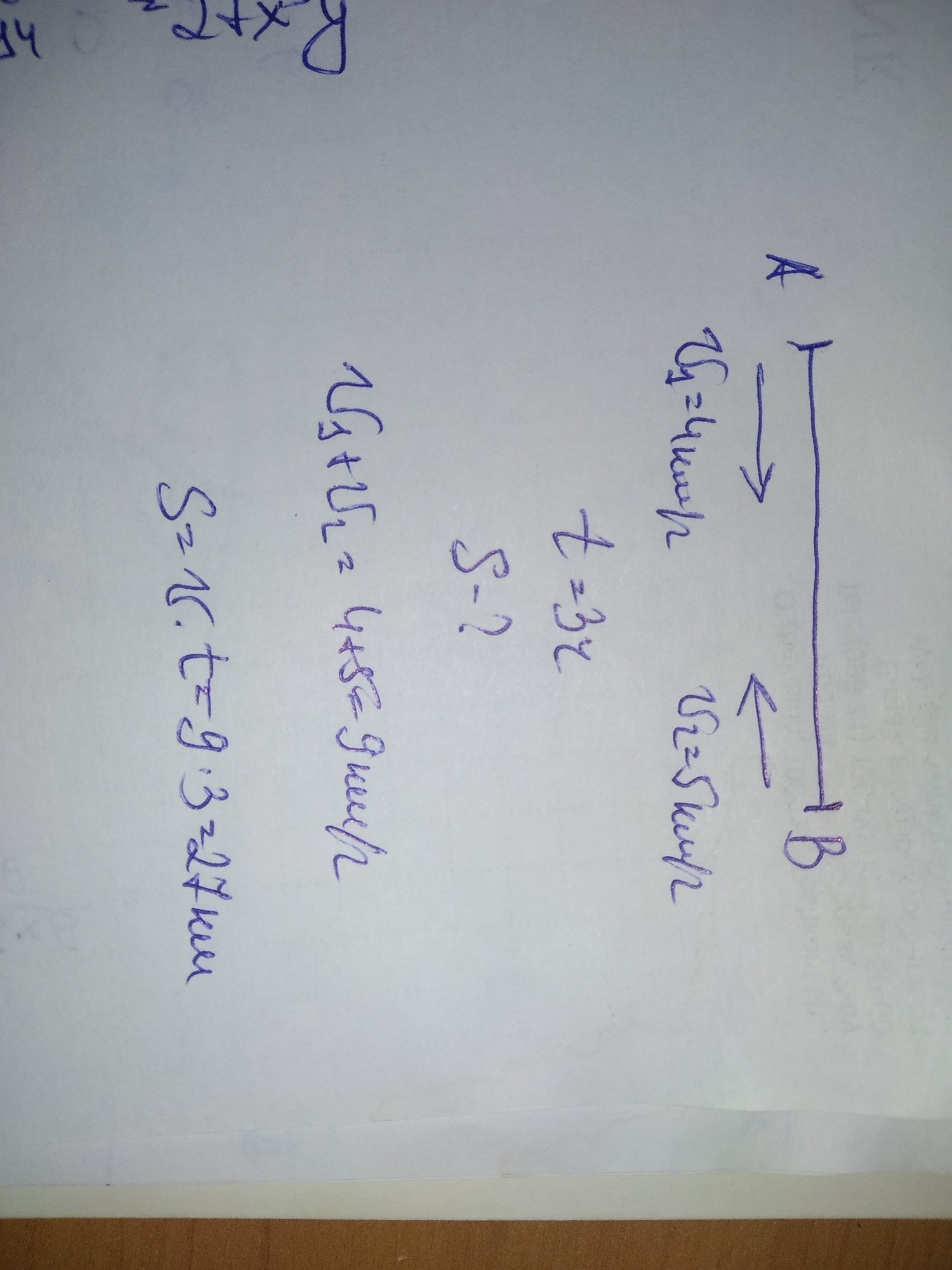 из двух турбаз вышли навстречу друг другу два туриста. Один турист шел со скоростью 4 км/ч, а другой - 5 км/ч. Они встретились через 3 часа. Найдите расстояние между турбазами???