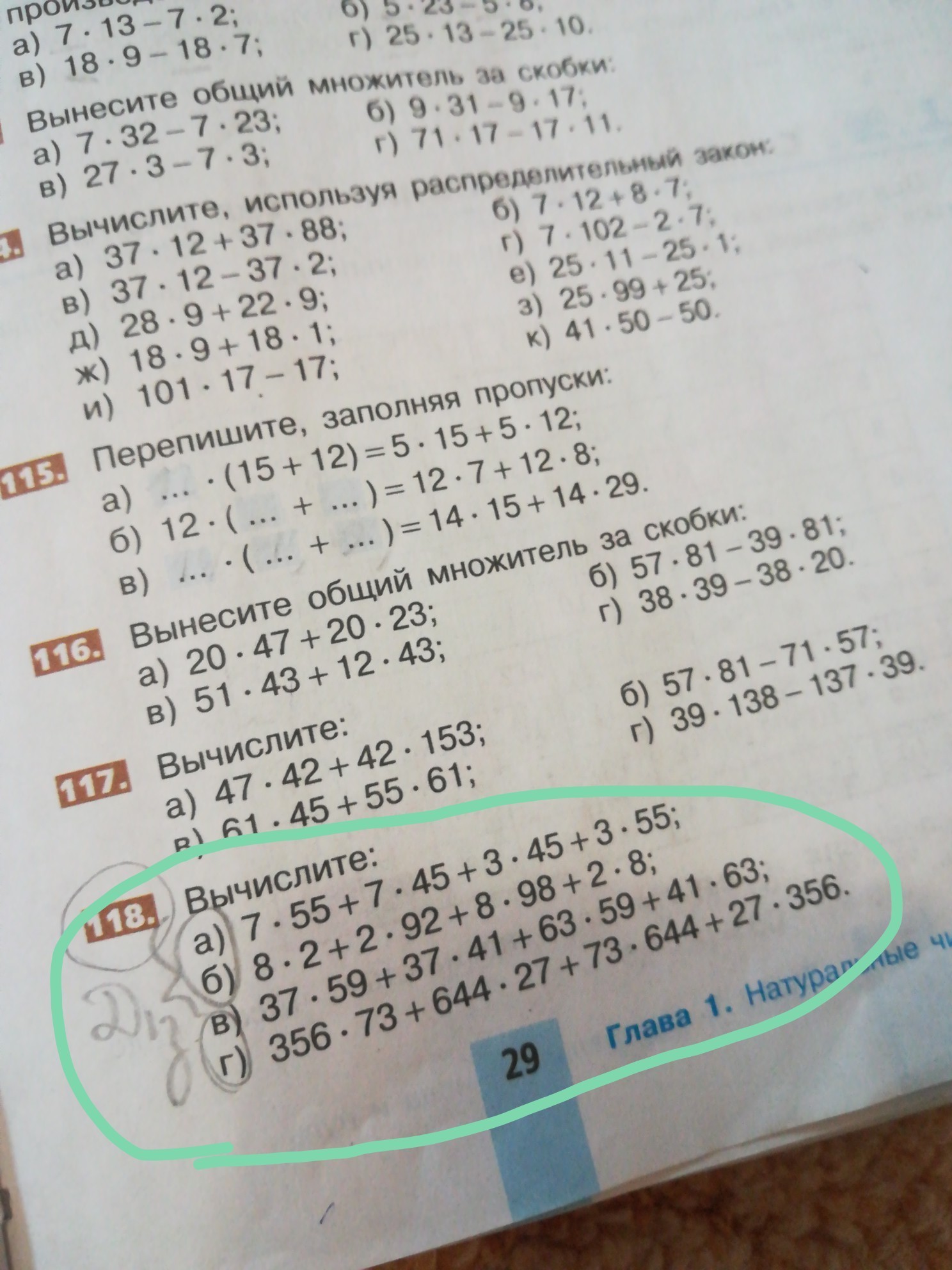 а ну тип смотри в 1 там 7 умножить на (55+45)+3 умножить(45+55)