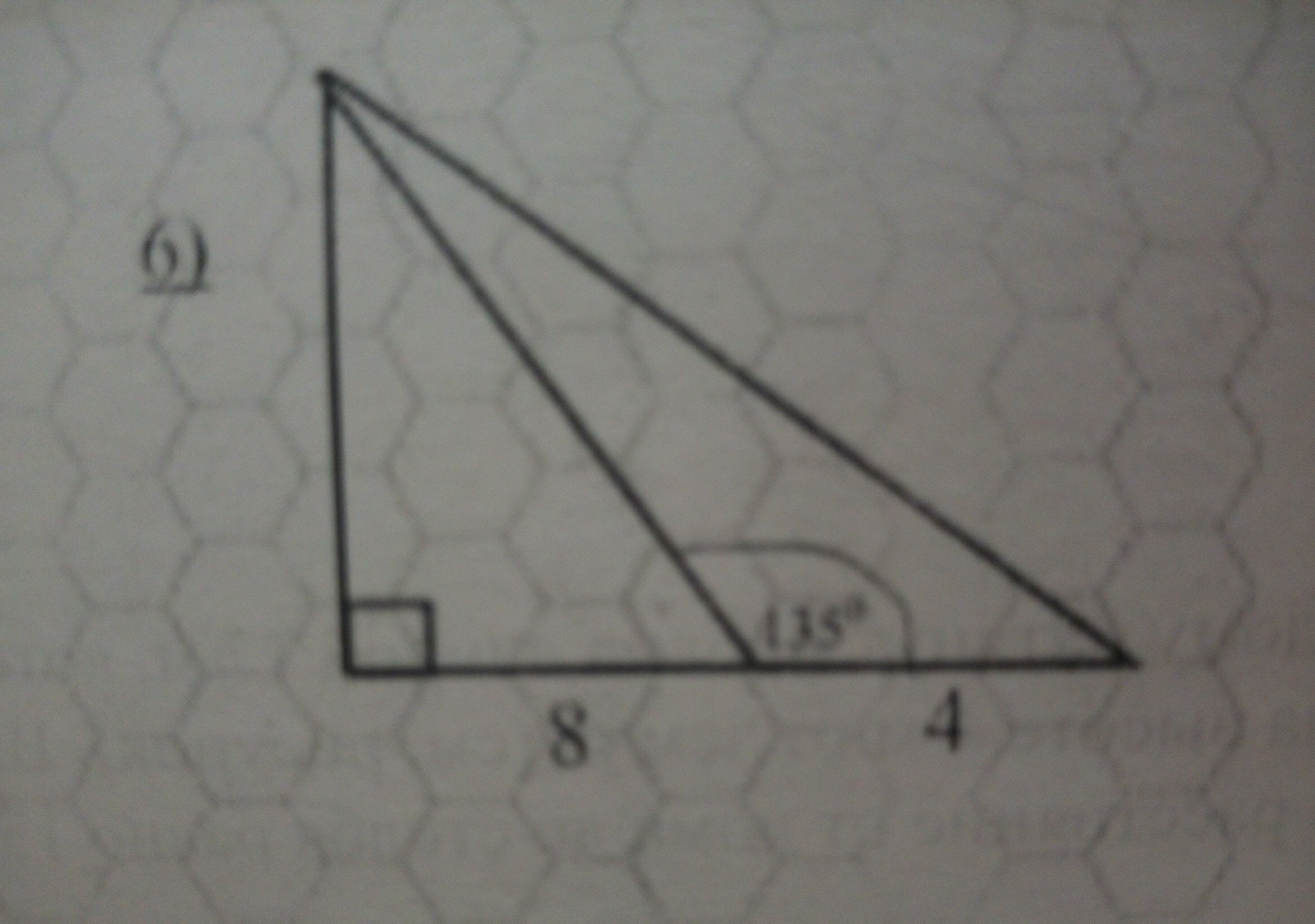 По рисунку: пусть треугольник АВС, BD - отрезок, соединяющий вершину В и вершину угла 136°. Один катет равен АС=8+4 = 12. Угол ADB, смежный с углом 135°, равен 45°. Значит в прямоугольном треугольнике ABD катеты равны и катет АВ равен 8. Тогда площадь треугольника АВС равна