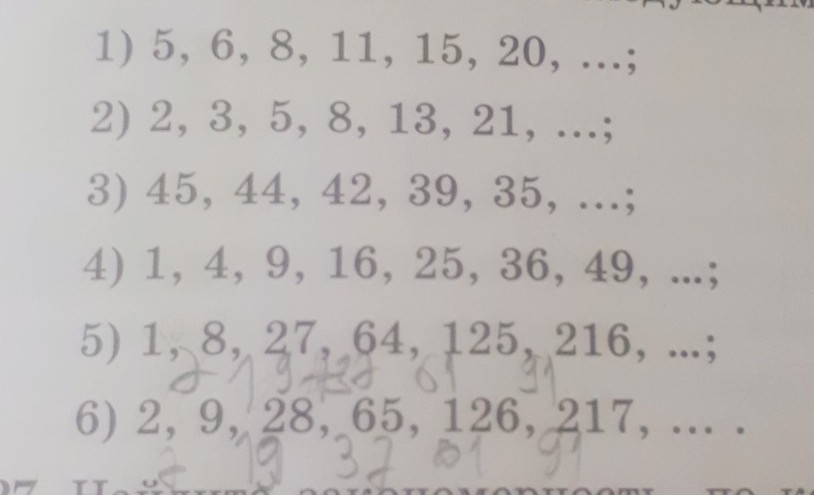 2) 2,3,5,8,13,21, 34,55 ( следующее число получается путём сложения двух предыдущих