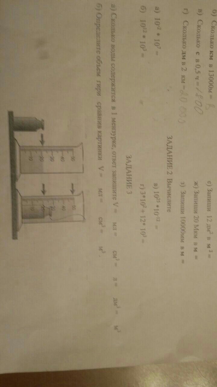 а) Объём жидкости в l-й мензурке: V = 20 см^3; мл = 20; см^3 = 20; л = 0,02; дм^3 = 0,02; м^3 = 0,00002