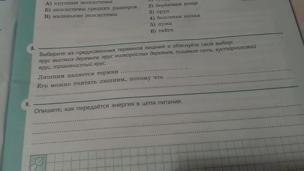 лишнее пищевая сеть потому что все остальное относится к ярусам растений. 9. Сначала энергию получают продуценты затем идут консументы 1 порядка затем консументы 2 порядка и затем редуценты