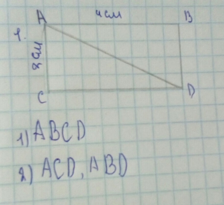 помогите пожалуйста по математике :Начерти прямоугольник и обозначь его вершины буквами. Запиши название прямоугольника.С помощью отрезка раздели прямоугольник на 2 треугольника. Запиши название треугольников, углов, отрезков.