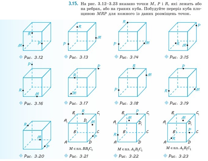 Побудуйте переріз куба пло-