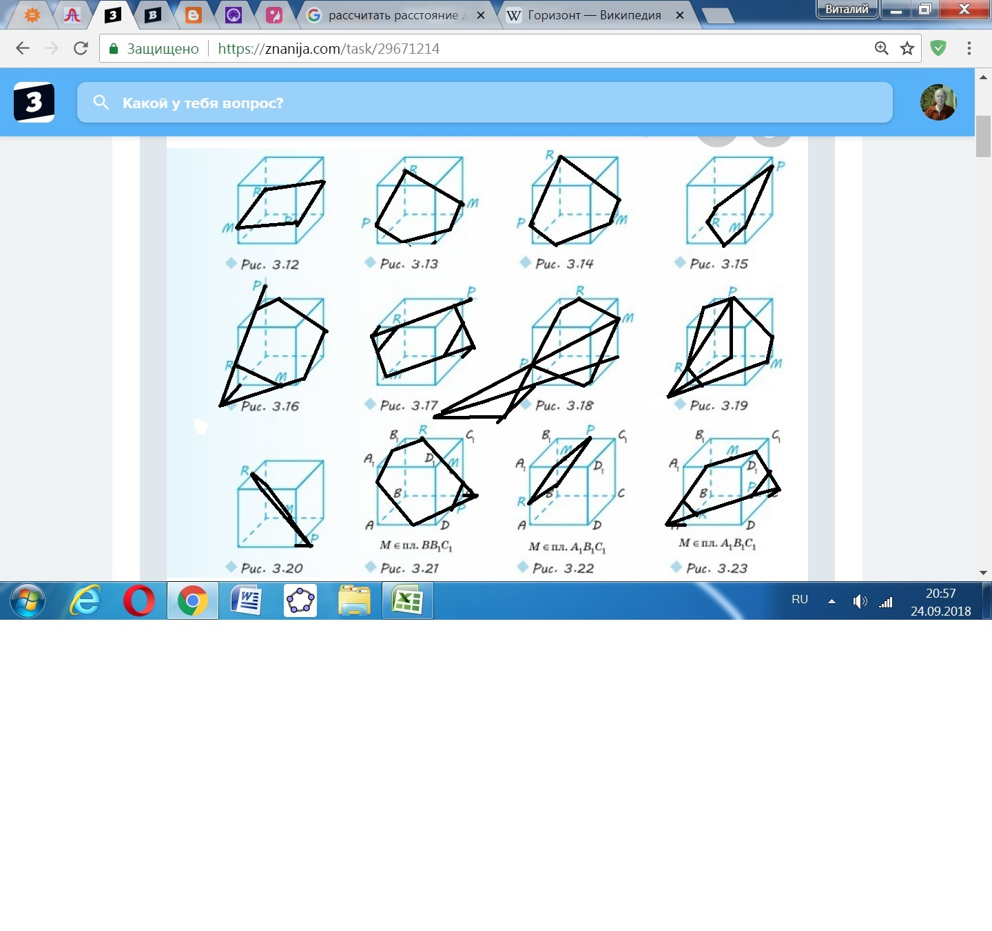 Также надо находить точки пересечения с плоскостью основания при помощи следов.