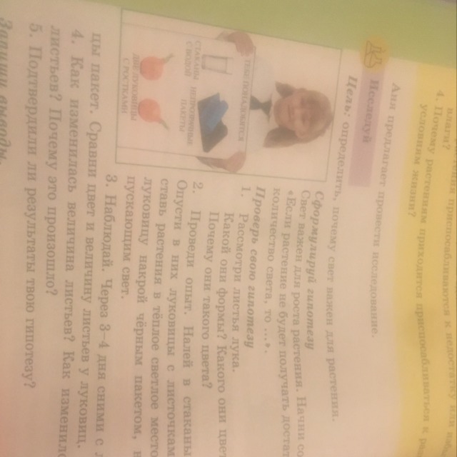 без света растения не может существовать поэтому желтеет и умирает а со светом она может жить так как в Свету есть полезные для него вещества