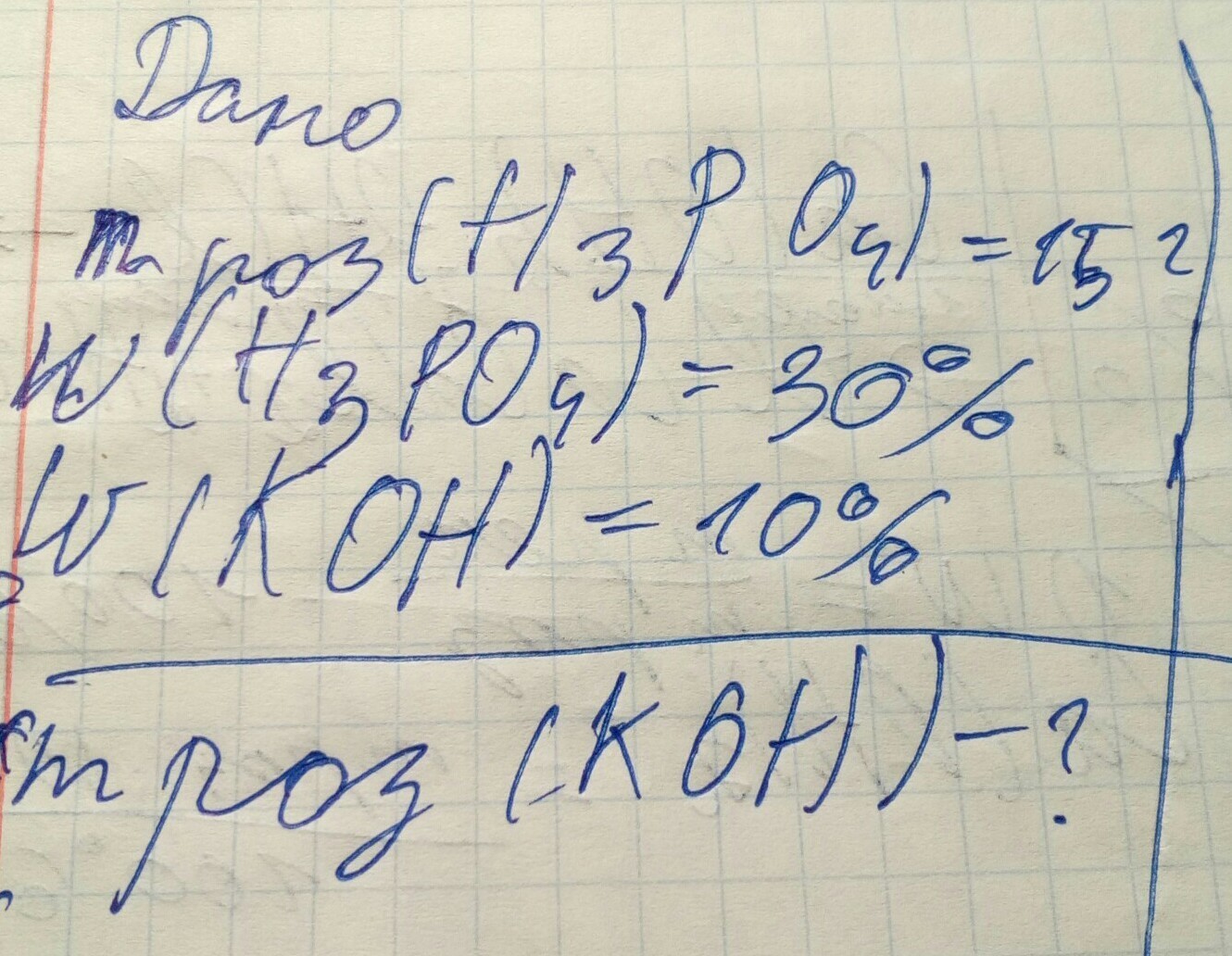 m(H3PO4) = m(раствора)*ω(H3PO4) = 15*0.3 = 4.5 г