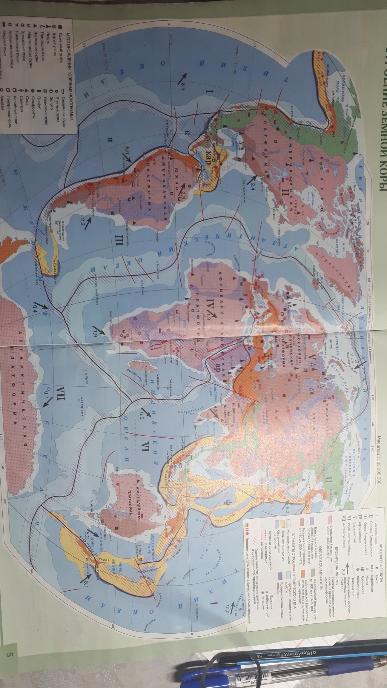 По карте строения земной коры(тектонической карте) определите,где расположены крупнейшие древние платформы,области древней и современной складчатости