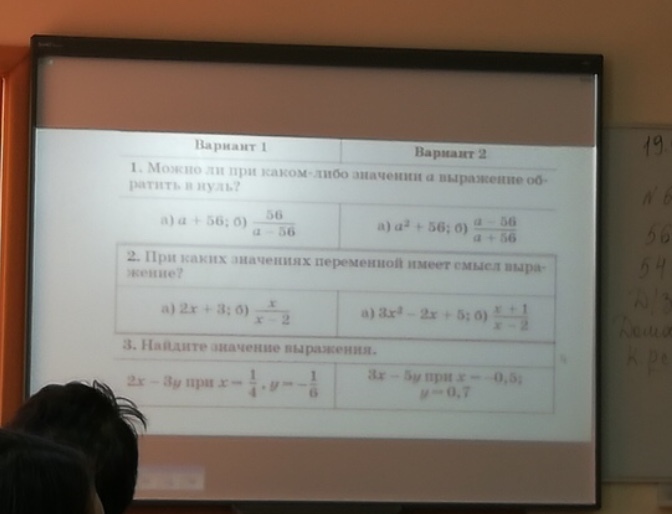 1). а). a= -56. б). нет. 2). а). при любом значении переменной. б). выражение имеет смысл в том случае, если знаменатель не равен 0. получаем: x-2=0, x=2. Ответ: x не должен равняться 2. 3). подставляем значения: 2*1/4-3*(-1/6)=1/2+1/2=1. Ответ: 1.
