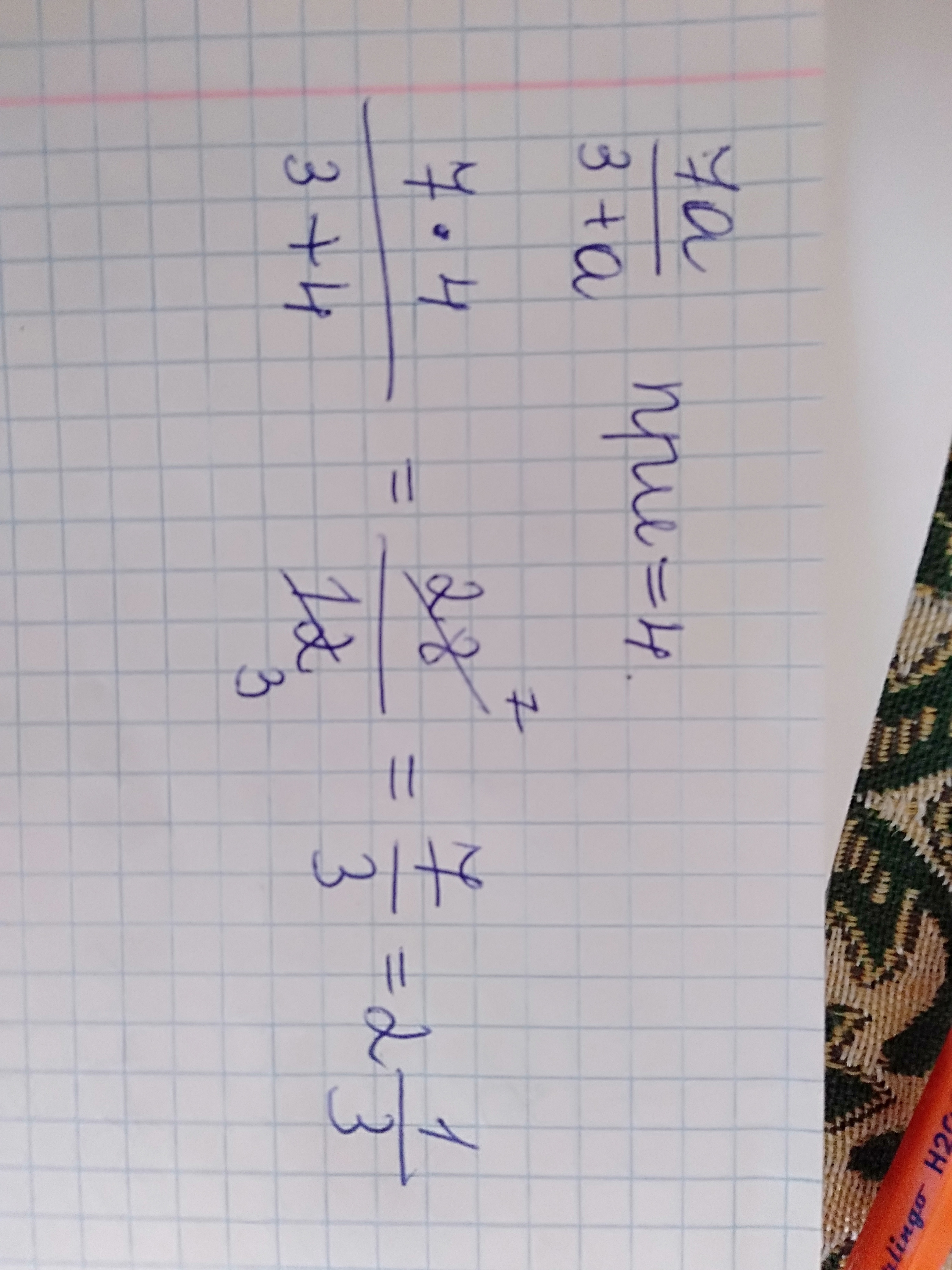 1) Если а=4, то 7*4/3+4= 28/7=4
