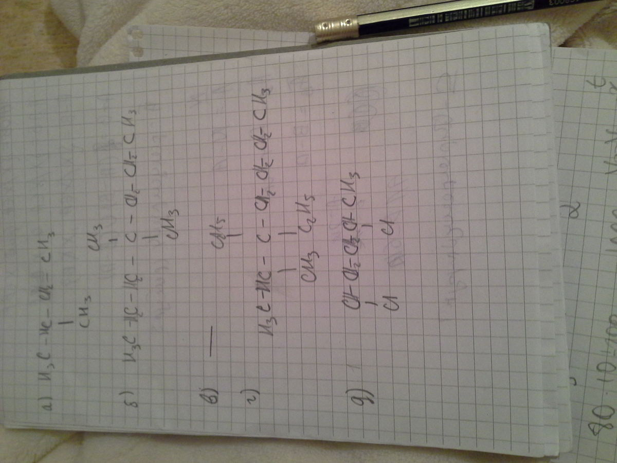 напишите структурные формулы соединений по их названиям: а) 2-метилбутан; б)4,4-диметилгептан; в)3-изопропилоктан; г) 2-метил-3,3-диэтилгептан; д) 1,4-дихлорпентан.